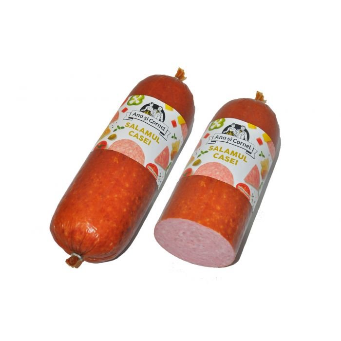 Ana si Cornel Salamul Casei este un produs romanesc traditional, cu gust bogat si textura fina, ideal pentru sandwich-uri, gustari rapide sau platouri reci. Disponibil prin AngroMarket.com, distribuitor de produse romanesti in Europa.