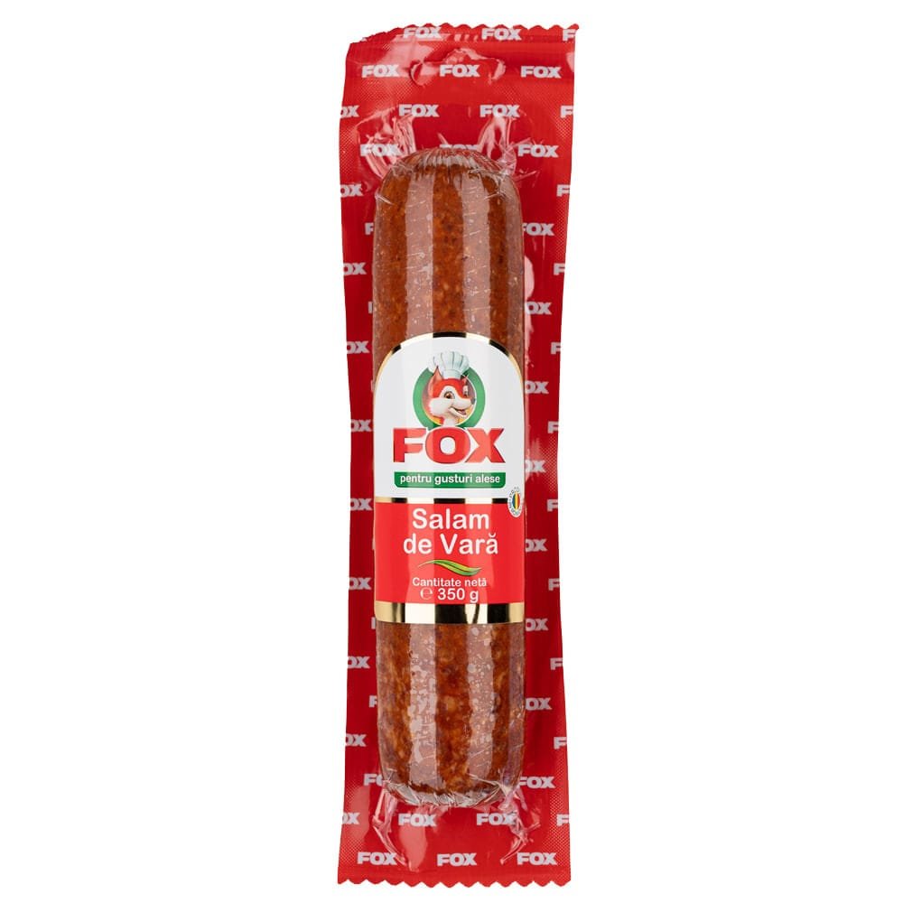 Fox Salam de Vara 350g – un salam clasic, savuros si echilibrat, ideal pentru completarea gamei de mezeluri romanesti din magazinul tau, disponibil prin AngroMarket.com.