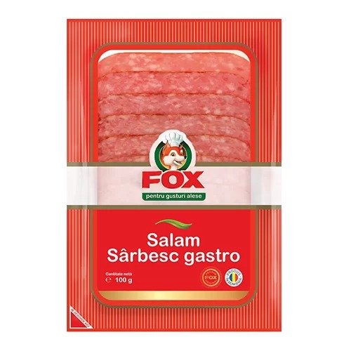 Ambalajul de 100g este practic si usor de expus la raft, pastrand prospetimea si calitatea produsului. Prin AngroMarket.com, distribuitor de produse romanesti in Europa, magazinele pot comanda Fox Salam Sarbesc Gastro 100g direct din Romania, beneficiind de preturi competitive.