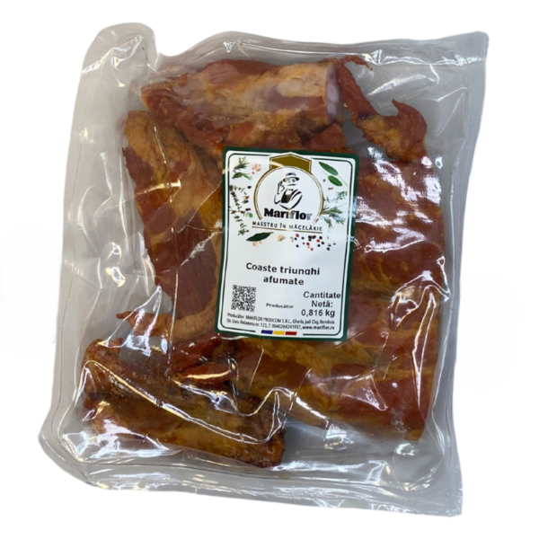 Mariflor Coaste Triunghi este o specialitate romaneasca destinata magazinelor care doresc sa ofere clientilor preparate de calitate, cu gust autentic si prezentare atractiva. Coastele sunt obtinute din carne de porc atent selectionata, afumate natural si portionate in bucati triunghiulare, pentru o manevrare mai usoara si o prezentare moderna, fara a pierde din farmecul traditional.