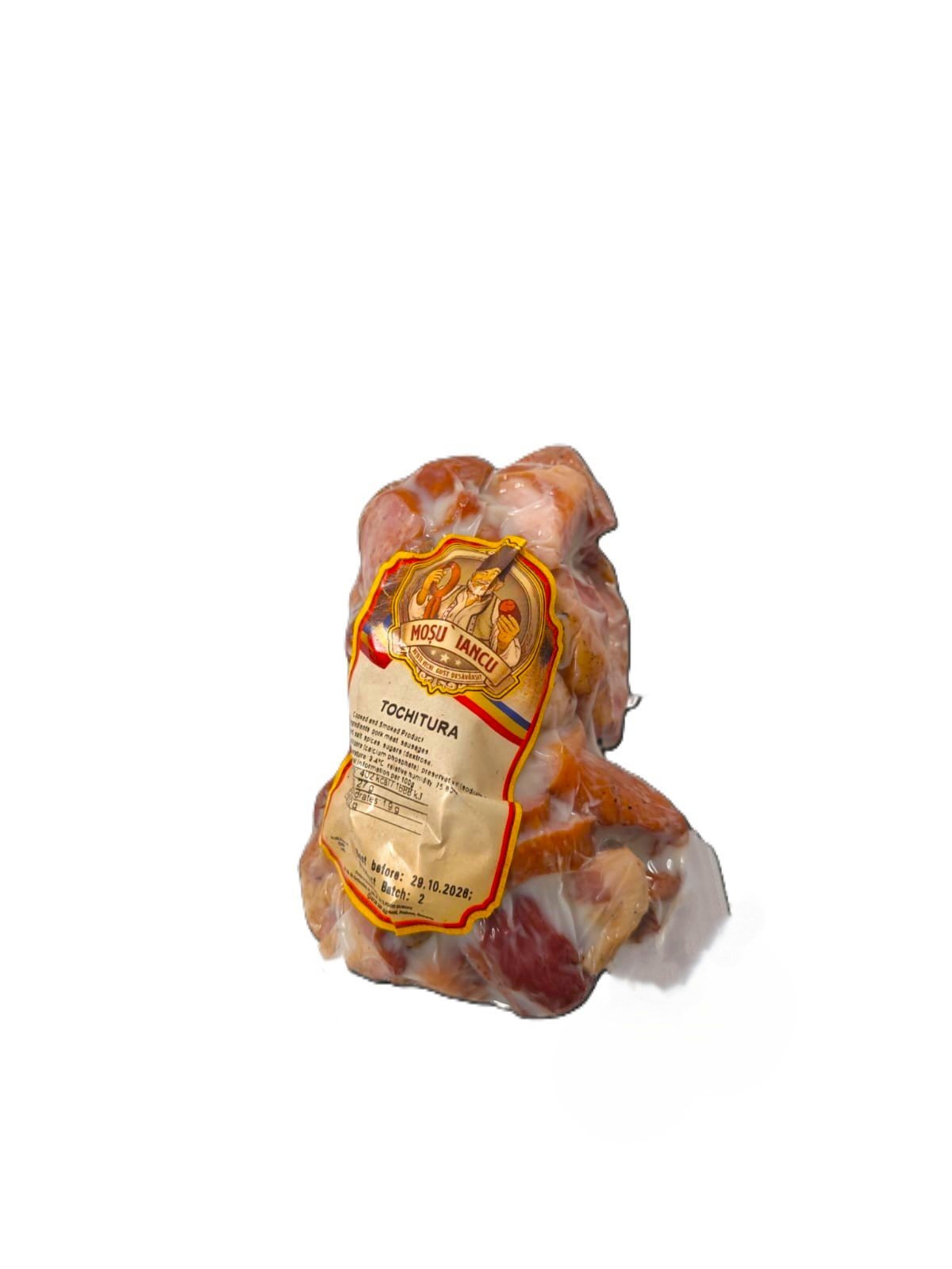 Mosu’ Iancu Tochitura 400g este un produs romanesc autentic, pregatit dupa o reteta traditionala, ideal pentru magazine alimentare si bacanii care doresc sa ofere clientilor preparate romanesti gata de servit. Disponibila prin AngroMarket.com, distribuitor de produse romanesti in Europa.